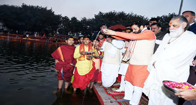 चंडीगढ़ – मुख्यमंत्री नायब सिंह सैनी ने कहा कि प्राचीन एवं ऐतिहासिक सन्निहित सरोवर के तट पर गीता जयंती के दिन दीपोत्सव मनाना एक गौरव का विषय है। इस दीपोत्सव से पवित्र ग्रंथ गीता के उपदेशों की रोशनी विश्व के हर जनमानस तक पहुंचेंगी। इससे हर मानव का जीवन अलौकिक और विकसित होगा। मुख्यमंत्री नायब सिंह सैनी सोमवार को अंतरराष्ट्रीय गीता महोत्सव-2025 में सन्निहित सरोवर पर दीपदान करने उपरांत बातचीत कर रहे थे।