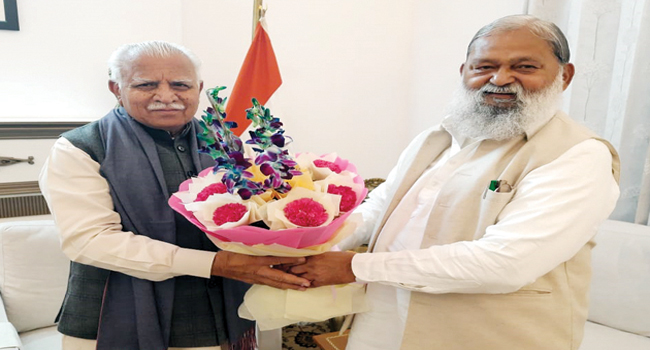 नई दिल्ली/चंडीगढ़: हरियाणा के ऊर्जा मंत्री अनिल विज ने नई दिल्ली में केंद्रीय ऊर्जा तथा आवासन एवं शहरी कार्य मंत्री मनोहर लाल जी से शिष्टाचार भेंट की। यह भेंट सौहार्दपूर्ण वातावरण में संपन्न हुई। इस अवसर पर दोनों मंत्रियों के मध्य हरियाणा राज्य में ऊर्जा क्षेत्र से संबंधित वर्तमान स्थिति, विद्युत उत्पादन एवं वितरण प्रणाली को और अधिक सुदृढ़ बनाने, निर्बाध एवं गुणवत्तापूर्ण बिजली आपूर्ति सुनिश्चित करने तथा नवीकरणीय ऊर्जा को बढ़ावा देने जैसे महत्वपूर्ण विषयों पर विस्तारपूर्वक चर्चा की गई।