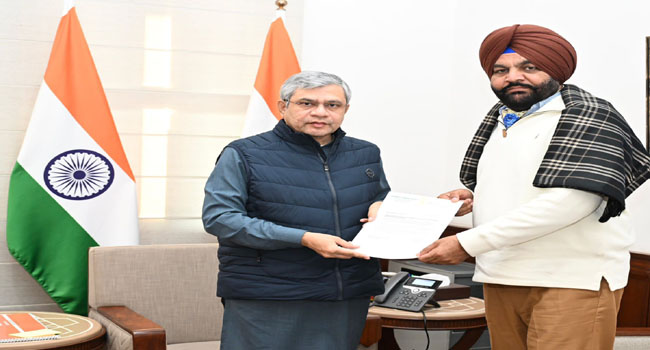 अमृतसर । अमृतसर से सांसद गुरजीत सिंह औजला ने रेल मंत्री अश्विनी वैष्णव से मुलाकात कर अमृतसर और पंजाब से जुड़े अति महत्वपूर्ण व लंबे समय से लंबित जनहित के रेल मुद्दों को मजबूती से उठाया। सांसद औजला ने लिखित में मांगे देते हुए कहा कि यह मांगें केवल क्षेत्रीय नहीं, बल्कि लाखों यात्रियों, छात्रों, व्यापारियों और श्रद्धालुओं की वर्षों पुरानी अपेक्षाओं से जुड़ी हैं। सांसद औजला ने रेल मंत्री के समक्ष अमृतसर–पुणे (हड़पसर) साप्ताहिक सुपरफास्ट एसी एक्सप्रेस ट्रेन शुरू करने की मांग रखी। उन्होंने कहा कि इस रूट पर बड़ी संख्या में छात्र, कारोबारी, नौकरीपेशा लोग और श्रद्धालु यात्रा करते हैं, लेकिन सीधी ट्रेन सेवा के अभाव में लोगों को भारी परेशानी का सामना करना पड़ता है।