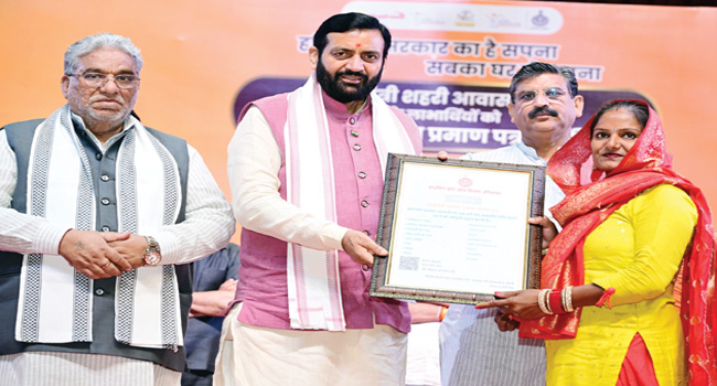प्रदेश सरकार ने सपनों को हकीकत में बदला है और आज ‘मुख्यमंत्री शहरी आवास योजना’ के तहत अंतरिम मलकीयत प्रमाण पत्र सिर्फ एक मालिकाना हक का दस्तावेज नहीं है, यह एक नई सुबह, एक नई शुरुआत का प्रतीक है। उन्होंने कहा कि सरकार की ये योजनाएं सिर्फ घर बनाने तक सीमित नहीं हैं। इनके पीछे प्रधानमंत्री नरेंद्र मोदी का “सबका साथ, सबका विकास, सबका विश्वास और सबका प्रयास” का विजन है। जब तक समाज का सबसे कमजोर वर्ग सशक्त नहीं होगा, तब तक सही मायने में विकास नहीं हो सकता। इसलिए सरकार ने इन योजनाओं को पारदर्शी और निष्पक्ष तरीके से लागू किया है। कोई सिफारिश नहीं, कोई भेदभाव नहीं, केवल ज़रूरतमंद परिवारों को ही लाभ मिला है। यह सरकार की पारदर्शिता और जवाबदेही नीति का एक और उदाहरण है। उन्होंने कहा कि यह हरियाणा सरकार की एक बड़ी सफलता है कि इन आवास योजनाओं में किसी भी तरह की धांधली या भ्रष्टाचार को घुसने नहीं दिया। हर चीज़ डिजिटल और पारदर्शी है। लाभार्थियों का चयन पूरी तरह से योग्यता के आधार पर किया गया है।