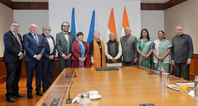 नई दिल्ली । चेक गणराज्य की संसद के सीनेट के उपसभापति डॉ. जित्का सेटलोवा के नेतृत्व में एक संसदीय प्रतिनिधिमंडल ने शुक्रवार को संसद में राज्य सभा के माननीय उपसभापति, हरिवंश से भेंट की। बैठक के दौरान, हरिवंश ने दोनों देशों के बीच गहरे सांस्कृतिक संबंध, व्यापार, रक्षा और अन्य प्रमुख क्षेत्रों में बढ़ती भागीदारी पर प्रकाश डाला।ऐतिहासिक संबंधों पर बल देते हुए, उन्होंने कहा कि वर्ष 1921 और 1926 में नोबेल पुरस्कार विजेता रवींद्रनाथ टैगोर की यात्राओं ने दोनों देशों के बीच पारस्परिक सम्मान और बौद्धिक जुड़ाव की सुदृढ़ नींव रखी। उनकी विरासत को याद रखने के लिए वर्ष 2004 में प्राग में टैगोर की एक आवक्ष मूर्ति लगाई गई और एक सड़क का नाम ‘ठाकुरोवा’ रखा गया। उन्होंने आगे स्मरण किया कि चार्ल्स यूनिवर्सिटी में भारत- विद्या (इंडोलॉजी) विभाग की स्थापना किए जाने से संस्कृति, भाषाओं और साहित्य में हमारी साझी रुचि झलकती है, जो वर्तमान पीढ़ियों को प्रेरित करती रहती है।