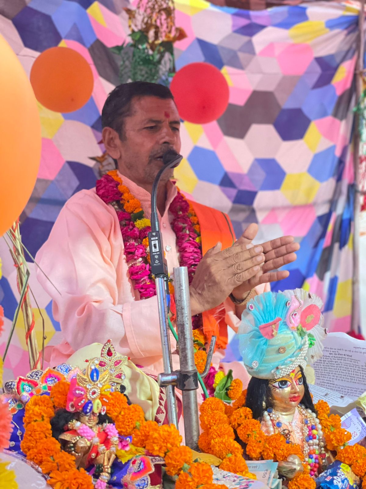 जिला एटा में हो रही श्रीमद्भागवत कथा में आज पं.श्री राघवेन्द्र शुक्ला प्राचार्य जी ने भक्तों को भगवान श्रीकृष्ण की लीलाओं का वर्णन करके सुनाया और आज कथा के पाँचवें दिन भगवान श्रीकृष्ण का जन्मदिन बहुत ही धूमधाम से मनाया गया।