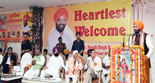 उन्होंने कहा कि इस पावन भूमि पर आकर वे स्वयं को गौरवान्वित महसूस कर रहे हैं। उपस्थित जनसमूह को नमन करते हुए उन्होंने आह्वान किया कि सभी को मिलकर पंजाब को फिर से विकास के पथ पर अग्रणी राज्य बनाना है। उन्होंने कहा, हम सबने मिलकर पंजाब को फिर से रंगला पंजाब बनाना है। मुख्यमंत्री ने कहा कि प्रधानमंत्री नरेंद्र मोदी ने सैनी समाज को सम्मान देने का काम किया है। मुझ जैसे एक छोटे कार्यकर्ता को मुख्यमंत्री बनाकर समाज को ताकत दी है। उन्होंने बताया कि सोमवार को हरियाणा विधानसभा में वे अपना दूसरा बजट पेश करेंगे। उन्होंने कहा कि 217 संकल्पों में से 60 पूरे किए जा चुके हैं और 120 पर तेजी से काम चल रहा है।