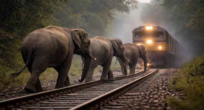 होजाई : असम के होजाई जिले में शनिवार तड़के एक दिल दहला देने वाली घटना हुई, जब सैरांग-नई दिल्ली राजधानी एक्सप्रेस ट्रेन जंगली हाथियों के झुंड से टकरा गई। इस हादसे में आठ हाथियों की मौत हो गई, जबकि एक हाथी गंभीर रूप से घायल हो गया। टक्कर इतनी जोरदार थी कि ट्रेन का इंजन और पांच डिब्बे पटरी से उतर गए। हादसा रात लगभग 2:17 बजे जामुनामुख-कंपुर सेक्शन के चंगजुराई क्षेत्र में हुआ।राहत की बात यह रही कि ट्रेन में सवार किसी भी यात्री को चोट नहीं पहुंची। लोको पायलट ने ट्रैक पर हाथियों को देखते ही इमरजेंसी ब्रेक लगाया, लेकिन टक्कर को रोका नहीं जा सका। घटनास्थल निर्दिष्ट हाथी कॉरिडोर नहीं है, फिर भी झुंड वहां पहुंच गया था।