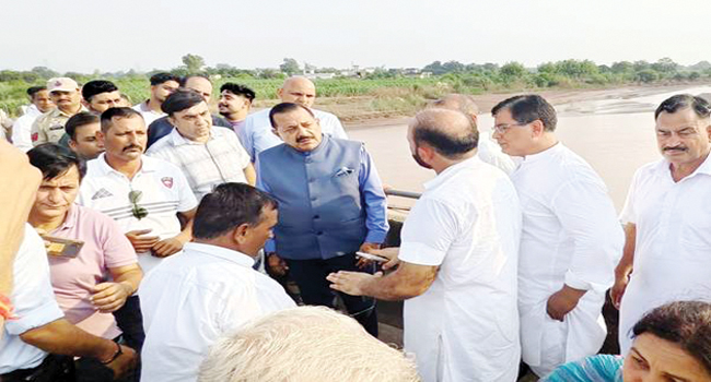 पठानकोट : केंद्रीय मंत्री डॉ. जितेंद्र सिंह ने हाल ही में आई बाढ़ के दौरान सार्वजनिक बुनियादी ढांचे को हुए नुकसान का आकलन करने के लिए आज पंजाब के पठानकोट जिले के कई गांवों का दौरा किया। पठानकोट के उपायुक्त आदित्य उप्पल और पुलिस अधीक्षक ढिल्लों के नेतृत्व में प्रशासनिक टीम के साथ केंद्रीय मंत्री ने मौके पर ही कई निर्देश जारी किए, जिनका तुरंत पालन किया गया, जिससे स्थानीय लोगों को काफी संतुष्टि और खुशी हुई।