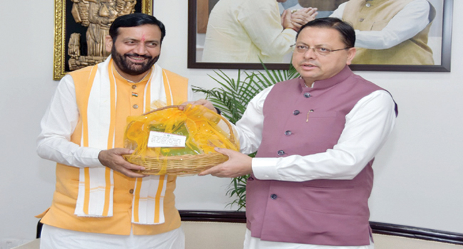 चंडीगढ़ – हरियाणा के मुख्यमंत्री नायब सिंह सैनी ने उत्तराखंड के मुख्यमंत्री पुष्कर धामी से देहरादून में उनके निवास स्थान पर पहुंचकर शिष्टाचार भेंट की। इस दौरान सैनी ने हरियाणा सरकार द्वारा लागू की गई विभिन्न जनकल्याणकारी योजनाएं सांझा की और बताया कि पिछले 11 वर्षों में राज्य सरकार द्वारा करवाए जा रहे विकास कार्यों से लोगों के जीवन स्तर में काफी परिवर्तन आया है।